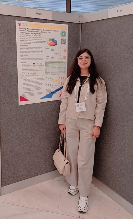 Dr. Rimsha Imran, Resident II, Hematology, presented her poster titled “Defining Maximal Aggregation Responses in Patients with Low Platelet Counts: A Study on Light Transmission Aggregometry" at the European Congress on Thrombosis and Hemostasis (ECTH 2025), held in Prague, Czech Republic, from October 22–24, 2025.
