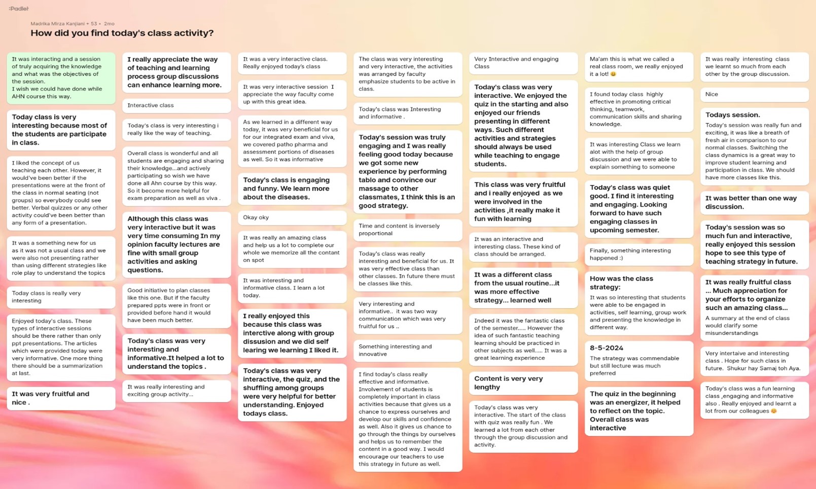 4. Student Feedback: The Jigsaw strategy was highly valued by most of the students as they found it interactive and different from lecture methods or one-way discussion methods. Students also shared through their feedback that through this method they were able to comprehend multiple concepts in a short period of time and were provided with the opportunity to deliver their content through innovative strategies. The students also appreciated the pre-test quiz that assisted them in identifying their prior understanding of concepts.